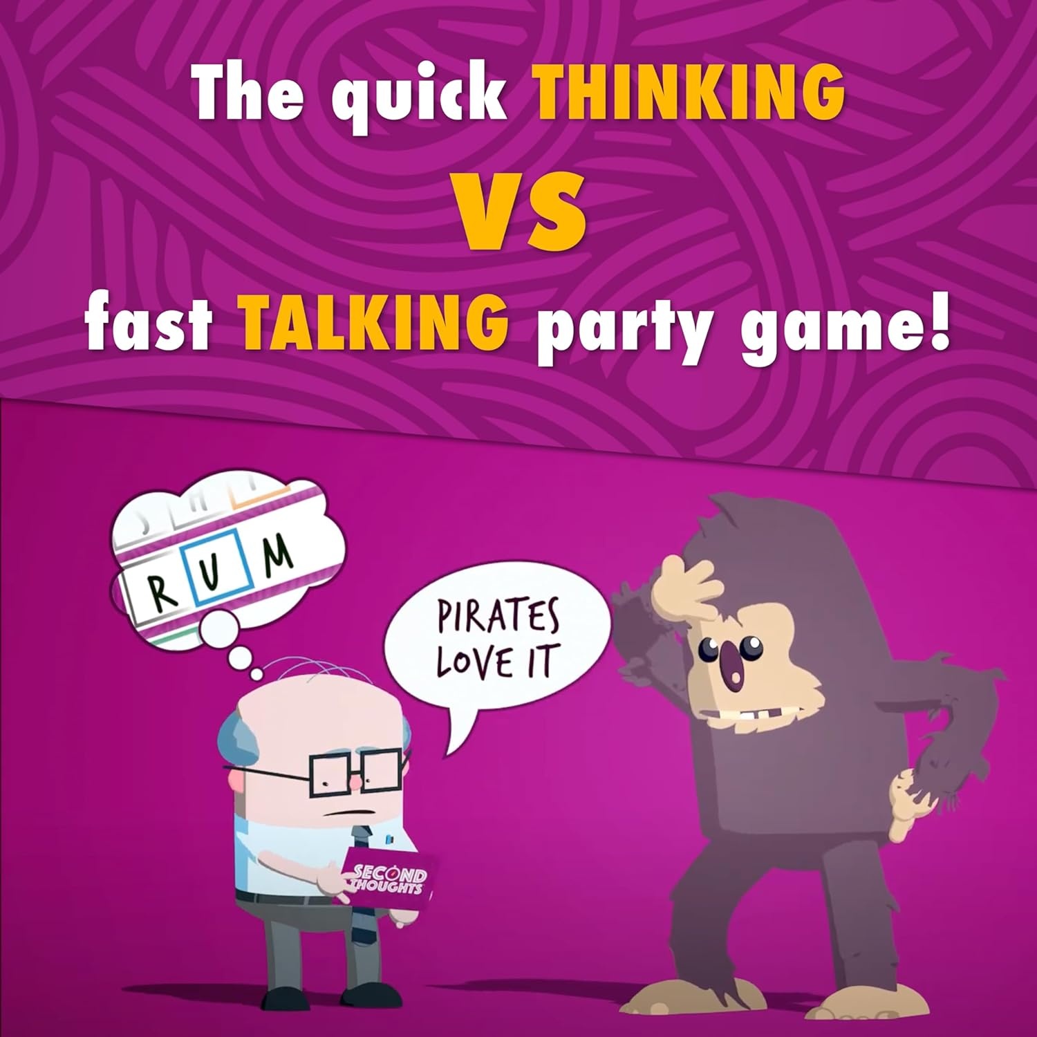 Each round of SECOND THOUGHTS™ is a hilarious high-speed attempt to stump the other team.